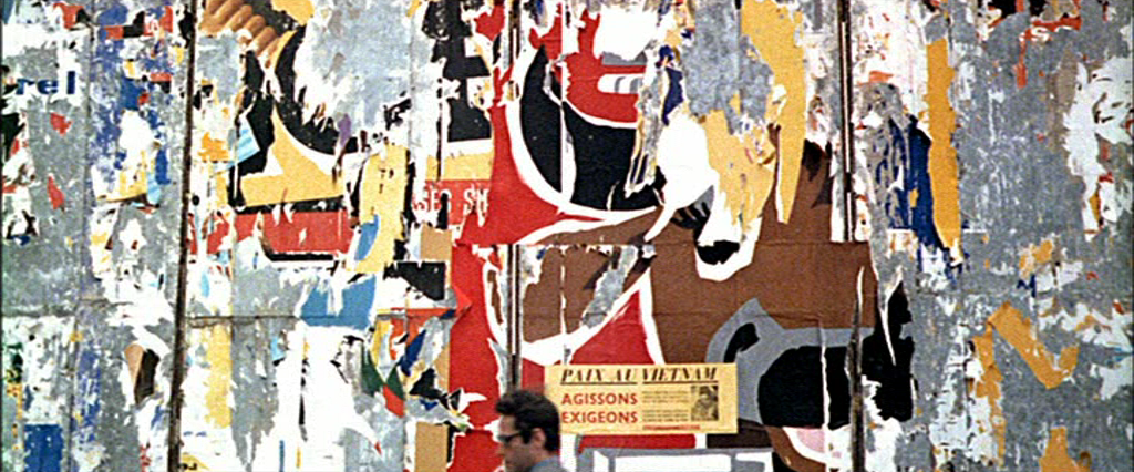 “[Jean-Luc] Godard once described 2 ou 3 chores as “a continuation of the movement begun by [Alain) Resnais’s Muriel.”‘ As if in token of this, he places a poster advertising that film on the wall of the Jansons’ living room… As directors, Godard and Resnais do not much resemble each other. Resnais works from elaborate, and often very literary, scripts. He is attracted to experimentation, especially in the matter of chronology, and has collaborated with writers associated with the New Novel (notably Marguerite Duras and Alain Robbe-Grillet); yet he shows no inclination, at least in his feature films, to challenge the controlling place of narrative. Stylistically, he creates textures of great smoothness and highly worked rhythmic subtlety. His work has the seriousness and consistency of tone that one associates with French high art. Godard, by contrast, never collaborates with writers and never writes a script in the usual sense at all. He dislikes Robbe-Grillet, is impatient with narrative, and derives his scenarios from murder mysteries, newspaper stories, and other movies. His characteristic textures are rough ones, marked by angular, improvisatory rhythms and abrupt changes of tone. […] Godard follows Resnais not only in these details but in the general interest in comic strips that they both share with other French directors. Last Year at Marienbad, for instance, makes allusion to Mandrake the Magician, and after Je Paime, je Paime, Resnais tried (though without success) to produce a film on a scenario by Stan Lee. Chris Marker’s La jetie, on which Resnais collaborated, is a filmed version of a photo roman and Roger Vadim’s Barbarella of a comic strip. In Alphaville Lemmy Caution asks, as if of a colleague: “And Dick Tracy? Is he dead?”