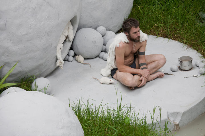 The collected works of Awfully Wonderful switched back and forth between the realist mode of SF and the more familiar metaphorical contextual reading of contemporary art. On the literalist-realist end of things were two video works – Philip Brophy’s The Sound of Milk (Prologue) [2004] and Ian Haig’s Chronicles of the New Human Organism [2009-10]. Both pieces delighted in the ironies of old SF and the inherent campiness of its visions, mixing antiquated futures with the not-so sublimated fears of contemporary society. At the other end of the scale, where didactic meaning dissolves into the handmade aesthetic of subjectivity, Deborah Kelly’s collage series Dream of a Common Language in the disintegrating circuit (with thanks to Donna Haraway) [2011] was a beautiful sequence of images created from images lifted from glossy fashion magazines, while Peter Yate’s Metropolis Robot, a version of Futura, the robot from Fritz Lang’s 1927 film Metropolis, held upright by balloons, was more charming than chilling. Installation sculptures and video works by Ms&Mr, David Haines and Joyce Hinterding, Sam Smith, and David Lawrey & Jaki Middleton elegantly charted the conflict between reading art as metaphor and its inherent material qualities – the thing remains the thing, but it speaks to us in a sublimated language of signifier and signified. But perhaps the most startling inclusions were the performance works that eschewed the trappings of generic contemporary art for the full glare of SF tropes: Adam Norton revived NASA imagery for his Mars Gravity Simulator – a complex set up of pulleys and counterweights that allowed the artist to walk at a right angle to the floor; and Hayden Fowler’s Anthropocene – a cross between a movie set and a zoological garden in which the artist enacted the future of man as a survivor lost in a mutated landscape.