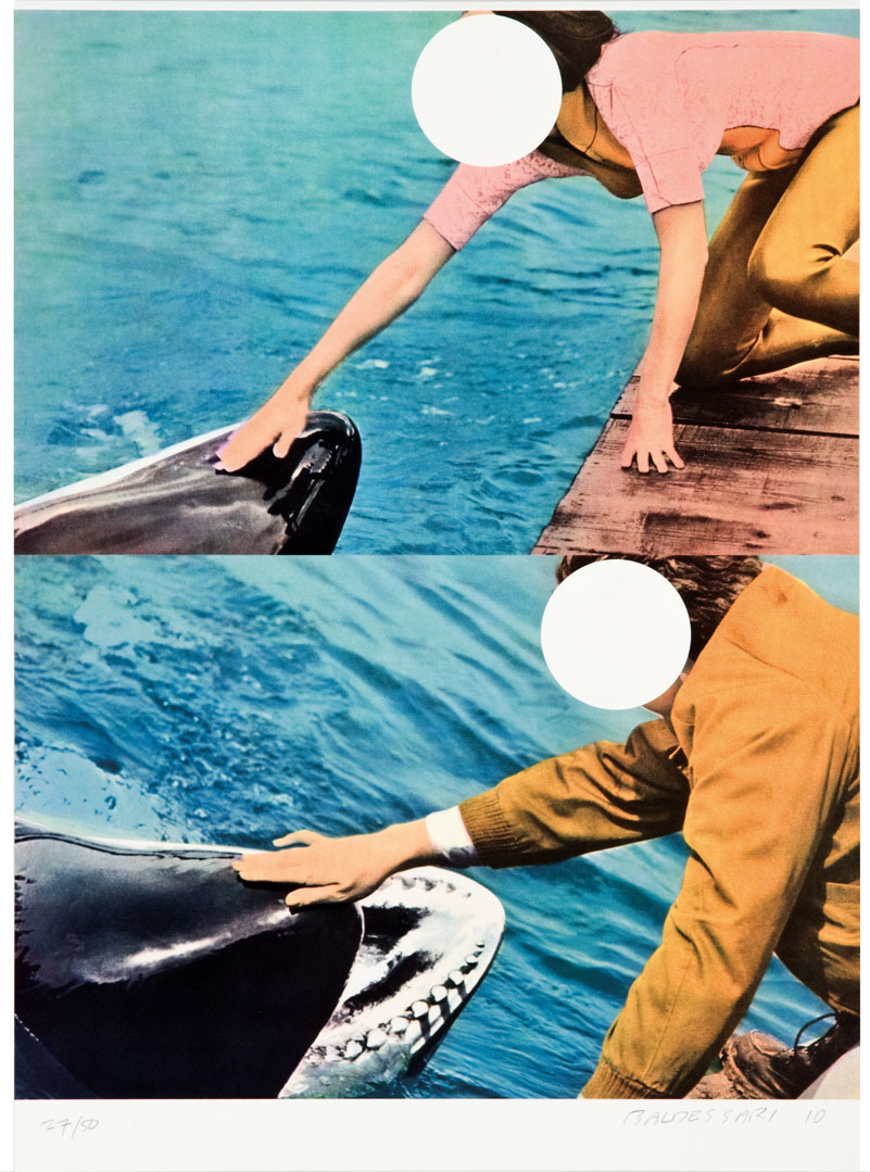 Image: John Baldessari, Two Whales (with People), 2010. Screenprint, 32.25″ x 23.625″.