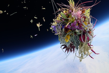 “Plants on the earth rooted in the soil, under the command of gravity. Roots, soil and gravity – by giving up the links to life, what kind of “beauty” shall be born? Within the harsh “nature”, at an attitude of 30,000 meters and minus 50 degrees Celsius, the plants evolve into EXBIOTA (extraterrestrial life). A pine tree confronting the ridge line of the Earth. A bouquet of flowers marching towards the sun hit by the intense wind. Freed from everything, the plants shall head to the space.”