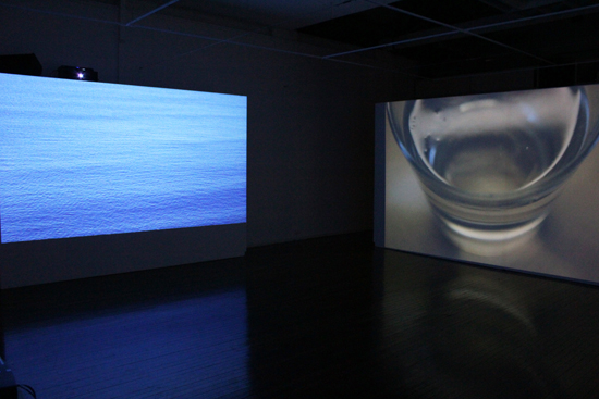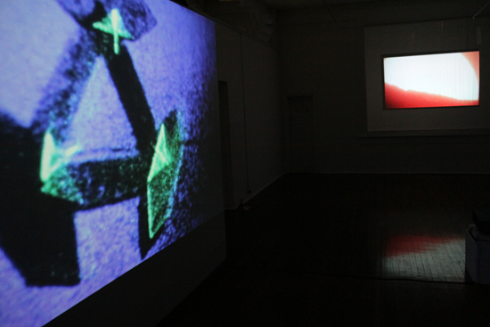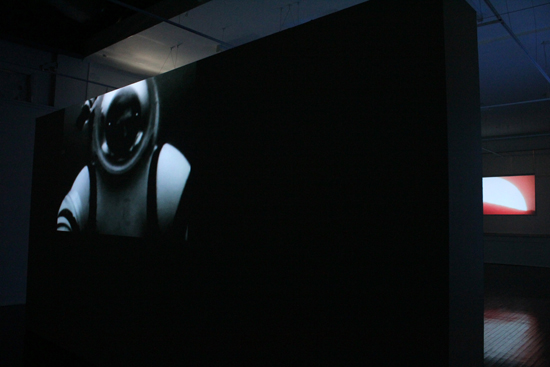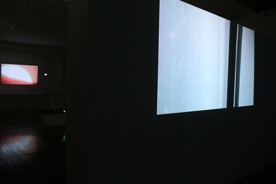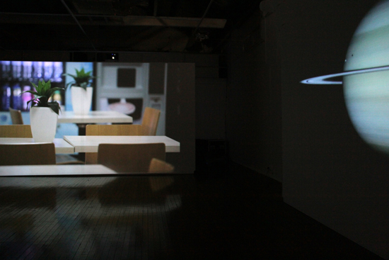 Andrew Frost, Science Fictional, 2012. Installation view, 6 Channel installation: 5x Blu-Ray Disc, HD Projection 16:9, 1 x 8″ Digital Photo Frame, 4 Channel Stereo Sound, various durations, looped.