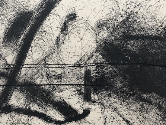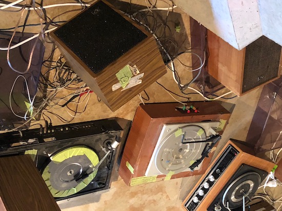 In the basement of the hospital was Michael Greave’s Movements and Traces, Articulations and Reverberations [2019], an installation of inscrutable minimalist beauty, a series of paintings produced in response to the resonant space [formerly the hospital’s ICU], and a drone sound work generated by the feedback produced by old record players and speakers.