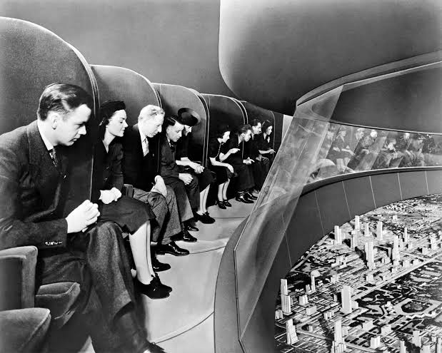 It was the New York World’s Fair of 1939 that became one of the most famous examples to showcase a new urban landscape, one that featured the utopian possibilities of technology and science. On the opening night, after Albert Einstein switched on the lights that would bring life to the fair’s motto – ‘Designing the World of Tomorrow’ – the fair proceeded to create a vision of a world in which ‘science could become a way of life and utopia would be nigh’. The fair showcased the latest technologies offfered by corporations (such as Rotolactor, an automatic cow-milking machine). Numerous other technological inventions were presented to an eager public as well: Voder, a synthetic human-speech device by AT&T; television sets by RCA, GE, and Westinghouse; and Elektro, a walking and talking robot by Westinghouse. However, it was the representation of a ‘city of the future’ that drew crowds by the millions…”