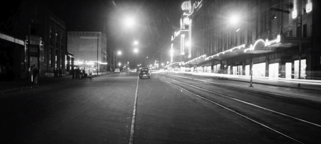 It’s the Neighbourhood_Epiphany_Mixes that I find most hypnotic. Recorded on Gibson’s iPhone and compiled into a personal archive of incidents, we move through the night time streets of Alexandria, finding dark corners, streetscapes and alley ways, each strobing under faulty street lights and broken fluoro tubes. While all of the videos here are original recordings by the artist, they share the same aesthetic as the found footage works – united by an eye for connections, possibilities and poetry.